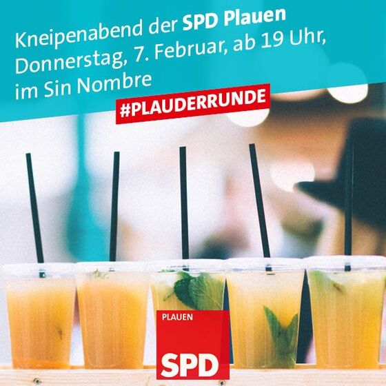 Die Plauener SPD lädt am kommenden Donnerstag, den 7. Februar, um 19 Uhr, zur offenen Gesprächsrunde ins Sin Nombre (Straßberger Str. 23) ein. Die Sozialdemokraten gestalten monatlich einen Brunch oder einen Kneipenabend für ihre Mitglieder sowie Interessierte aus. Zu diesen Gelegenheiten soll über die Stadtpolitik diskutiert werden. „Alles was gerade politisch bewegt, kann und soll dabei auf den Tisch kommen“, so die Vorsitzende der Plauener SPD, Juliane Pfeil-Zabel MdL, zur Intention der Veranstaltung.